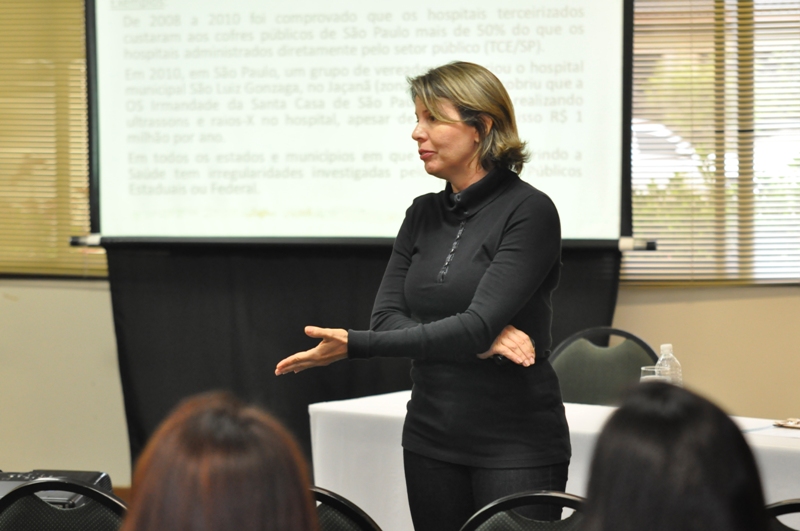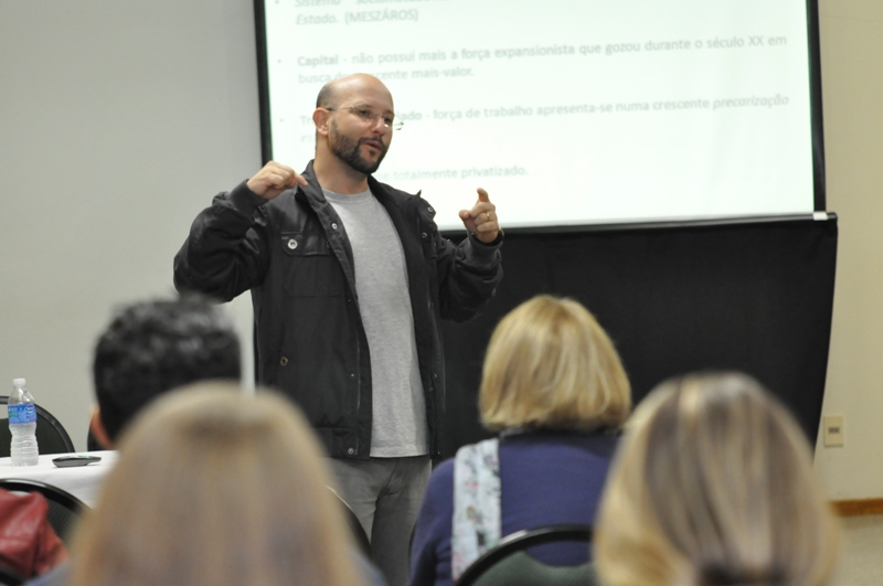Há poucos minutos a coordenadora técnica do CRESS 12ª Região Fabiana Negri fez a abertura da última Mesa Redonda do I CCAS com o tema As Políticas Socias, o Fundo Público e os desafios ao Exercício Profissional. Neste momento quem fala sobre o tema é o palestrante Evilásio Salvador, na sequência teremos a fala da palestrante Beatriz Augusto Paiva.