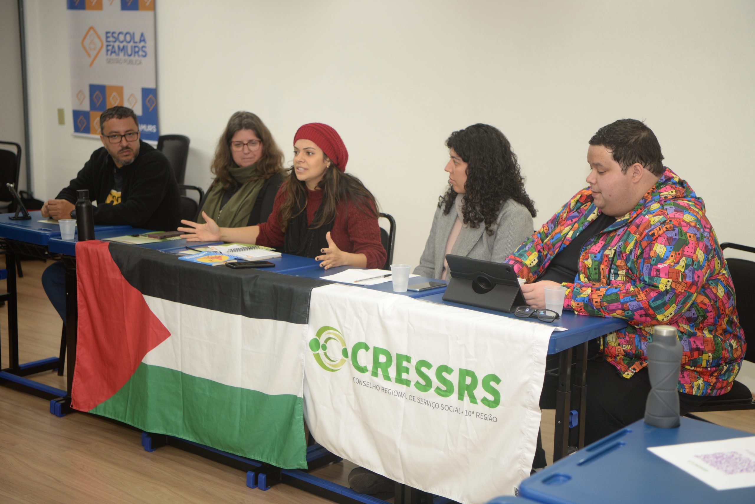 O encontro, que antecede o Descentralizado da Região Sul, foi sediado pelo CRESS RS e realizado na capital, Porto Alegre, tendo como tema da mesa de debate “Direito à Comunicação em tempos de crises e desinformação”. Para conduzir o debate, participaram o Assistente Social Leonardo Koury, Professor do Instituto de Educação Continuada da PUC MINAS e representante do CFESS no Fórum Nacional pela Democratização da Comunicação, a jornalista Kátia Marko, editora do jornal Brasil de Fato (RS) e Jéssica Degrandi, Assistente Social, Doutora em Serviço Social pela PUCRS e integrante de base na Comissão de Comunicação do CRESS SC.