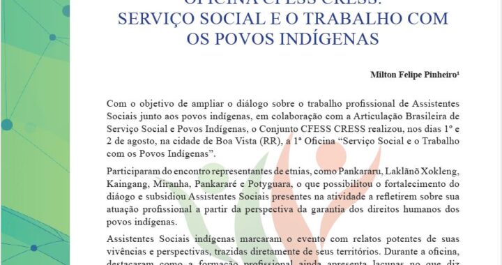Boletim Eletrônico nº 127 – Oficina CFESS CRESS: Serviço Social e o Trabalho com os Povos Indígenas