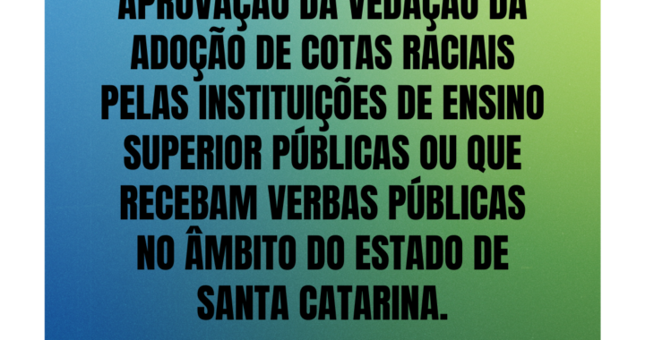 NOTA DE REPÚDIO À DECISÃO NA ALESC DIANTE DA APROVAÇÃO DA VEDAÇÃO DA ADOÇÃO DE COTAS RACIAIS PELAS INSTITUIÇÕES DE ENSINO SUPERIOR PÚBLICAS OU QUE RECEBAM VERBAS PÚBLICAS NO ÂMBITO DO ESTADO DE SANTA CATARINA