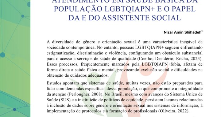 O artigo é de autoria do Assistente Social, conselheiro do CRESS SC, Nizar Amin Shihadeh, especialista em Saúde Coletiva (UNIPAMPA), especialista em Impactos da Violência na Saúde (ENSP FIOCRUZ), mestre em Serviço Social (UFSC) e pós-graduando no curso de especialização em Serviço Social CFESS-ABEPSS-UERN.